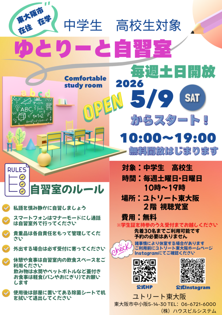※休室の場合があります。最新情報は公式HP・公式Instagramでご確認ください。