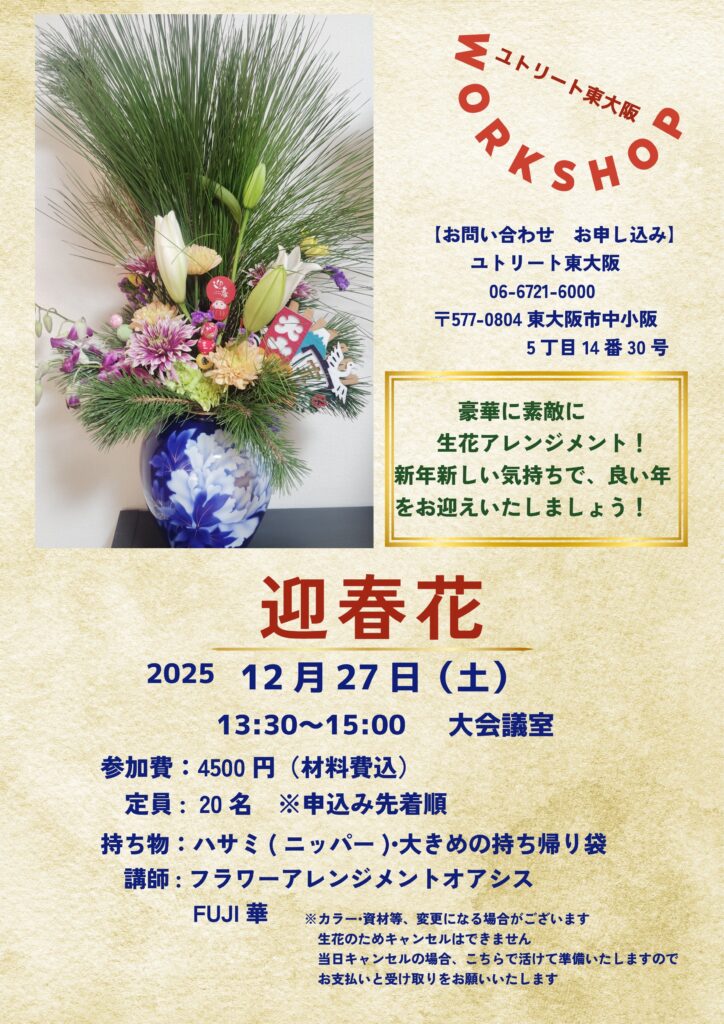 お申込みは、ユトリート東大阪 TEL:06-6721-6000 までお気軽にお電話ください。